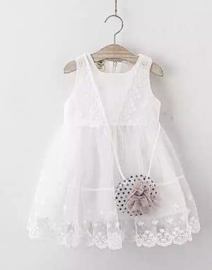 סט שמלת טול רקמה לבנה ואקססוריז תואמים