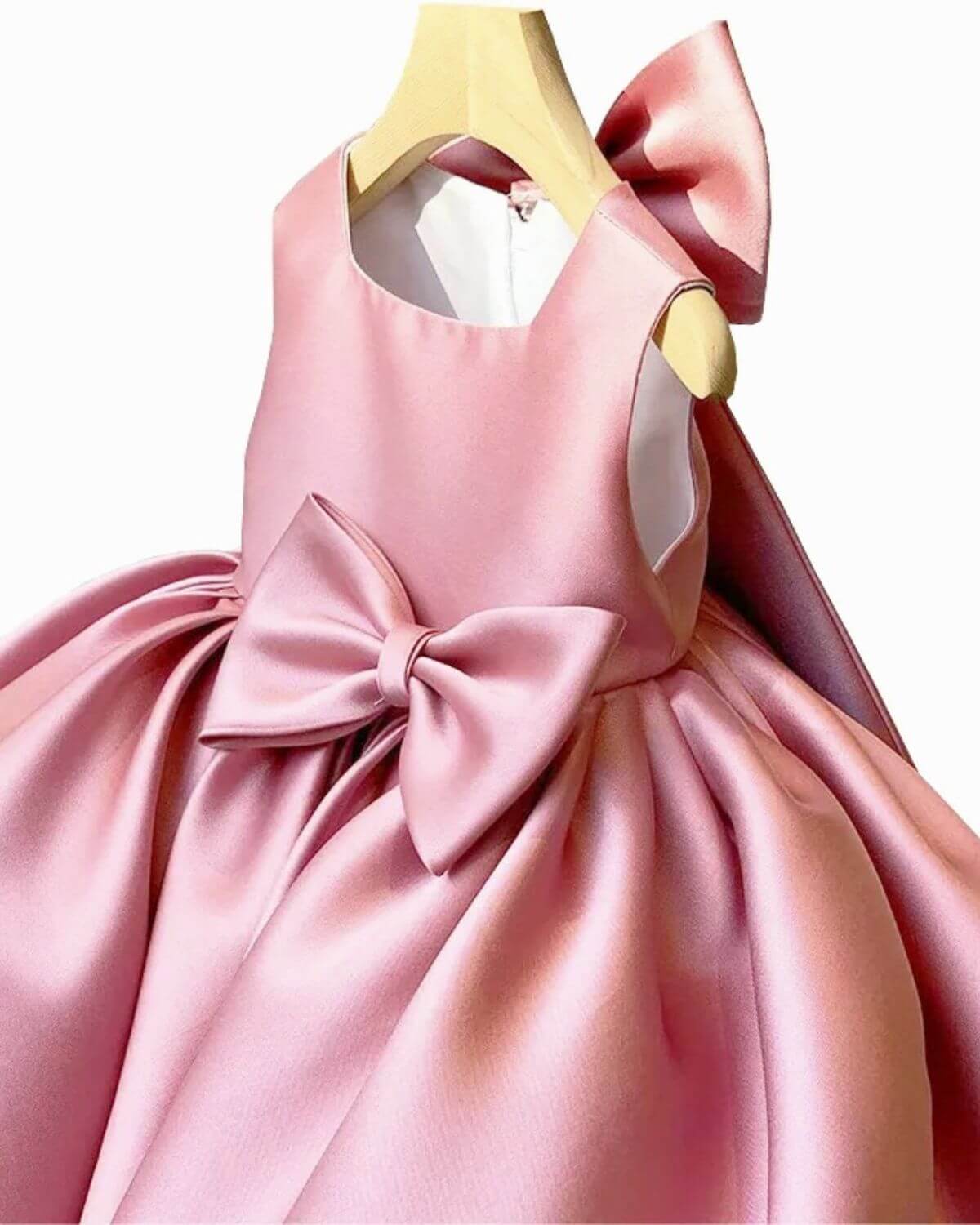 שמלה בגזרת גופיה, בצבע ורוד עם פפיונים גדולים מלפנים ומאחור