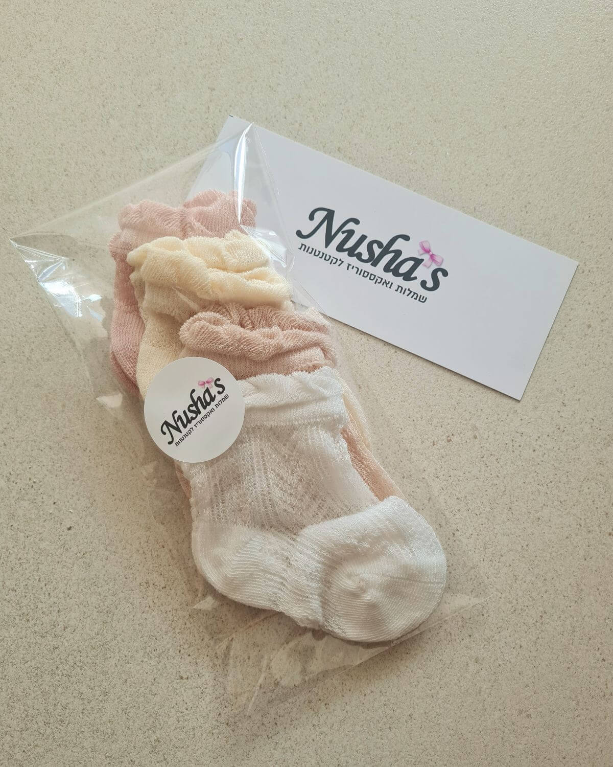 צבעי הגרביים בסט: לבן, בז׳, שמנת וורוד עתיק